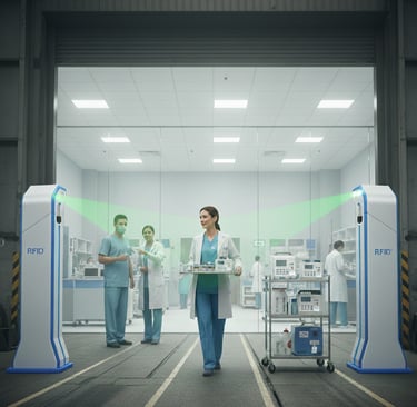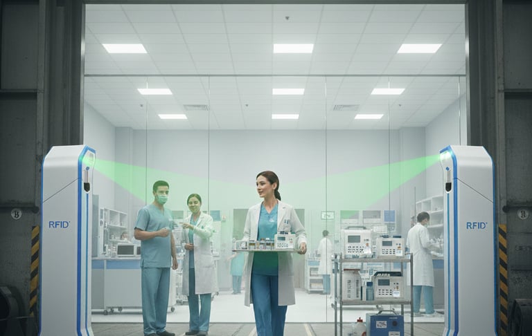 RFID (Radio Frequency Identification) is a technology that uses radio waves to capture data from tagged items automatically. Unlike barcode scanning, RFID does not require line-of-sight and can read hundreds of items within seconds, improving accuracy and speed